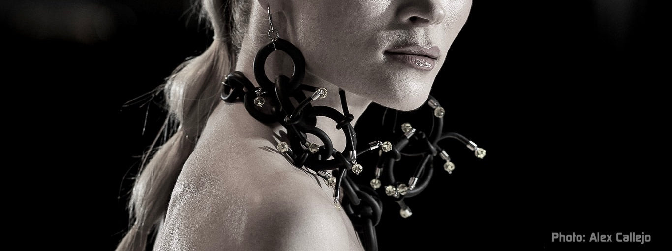 French-born, Chicago-based designer Delphine Pontvieux is the creative force behind NYET Jewelry, where bold design meets artisanal craftsmanship. As owner, designer, and maker, she juxtaposes unconventional materials like rubber and semi precious gemstones and turns them into striking statement pieces that challenge traditional jewelry norms. Whether crafting bold necklaces or distinctive cuffs, her work embodies a daring, yet, refined spirit, perfect for those who dare to be different.