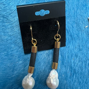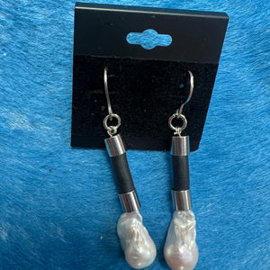 Rubber and Baroque Pearl Earrings Silver or Gold