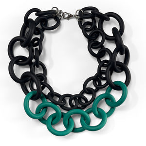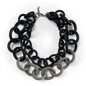 DOUBLE STRAND BLACK AND WHITE RUBBER NECKLACE.