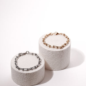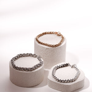 Urban luxe, reimagined: versatile chain bracelets in silver or gold tones for layered, statement-making wrists.