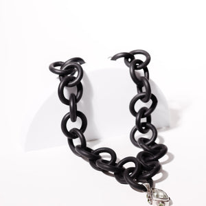 Step into the artful intersection of elegance and ease with this standout piece. A beautifully free‑form green amethyst takes centre stage, its organic shape and soft green hues flanked by five sparkling peridots, together creating a vibrant trio of gemstones set in polished silver bezels. The contrast is striking: these lively, luminous stones rest on a sleek black rubber chain, On the one hand, it boasts the richness of fine gemstones; on the other, the reduced weight and dynamic texture of rubber make it effortlessly wearable. It is a perfect expression of NYET’s ethos: luxury re‑imagined without compromise.