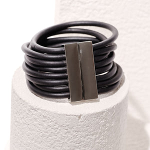 Bold simplicity: eight strands of matte black rubber with a sleek magnetic clasp.