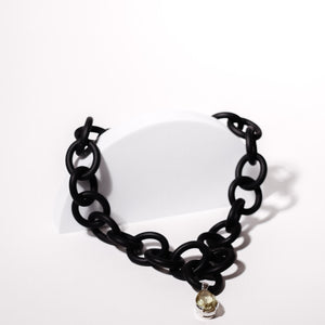 Black Rubber chain; Stainless Steel lobster clasp and components.