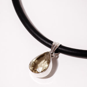Rubber Necklace with tear drop lemon topaz