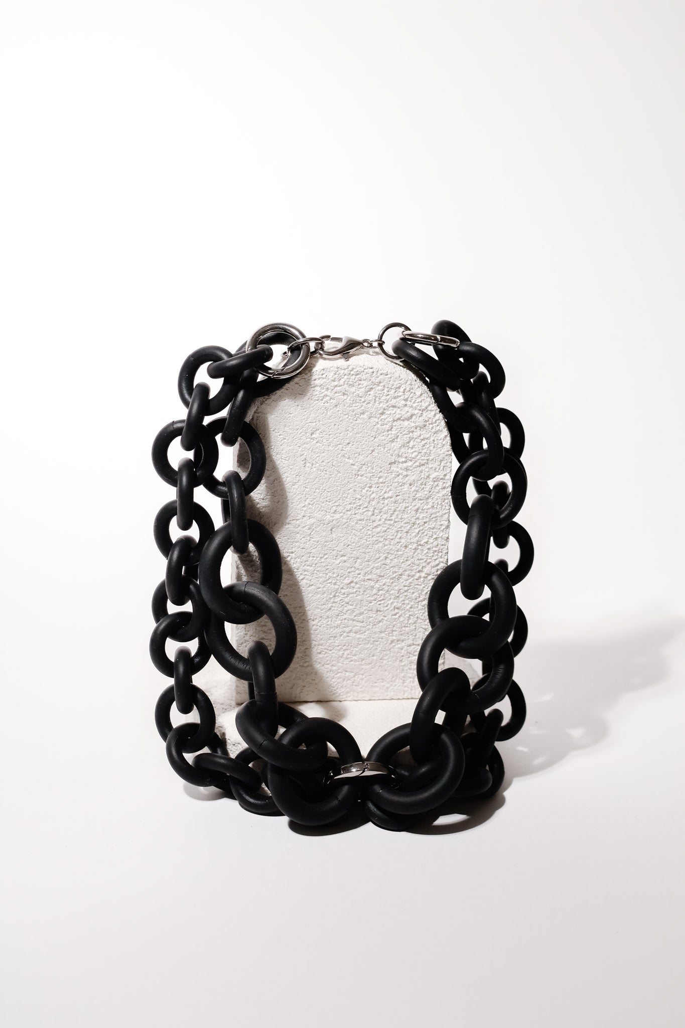 Bold and beautifully modular, this double-strand black rubber necklace is designed for endless creativity and standout style.