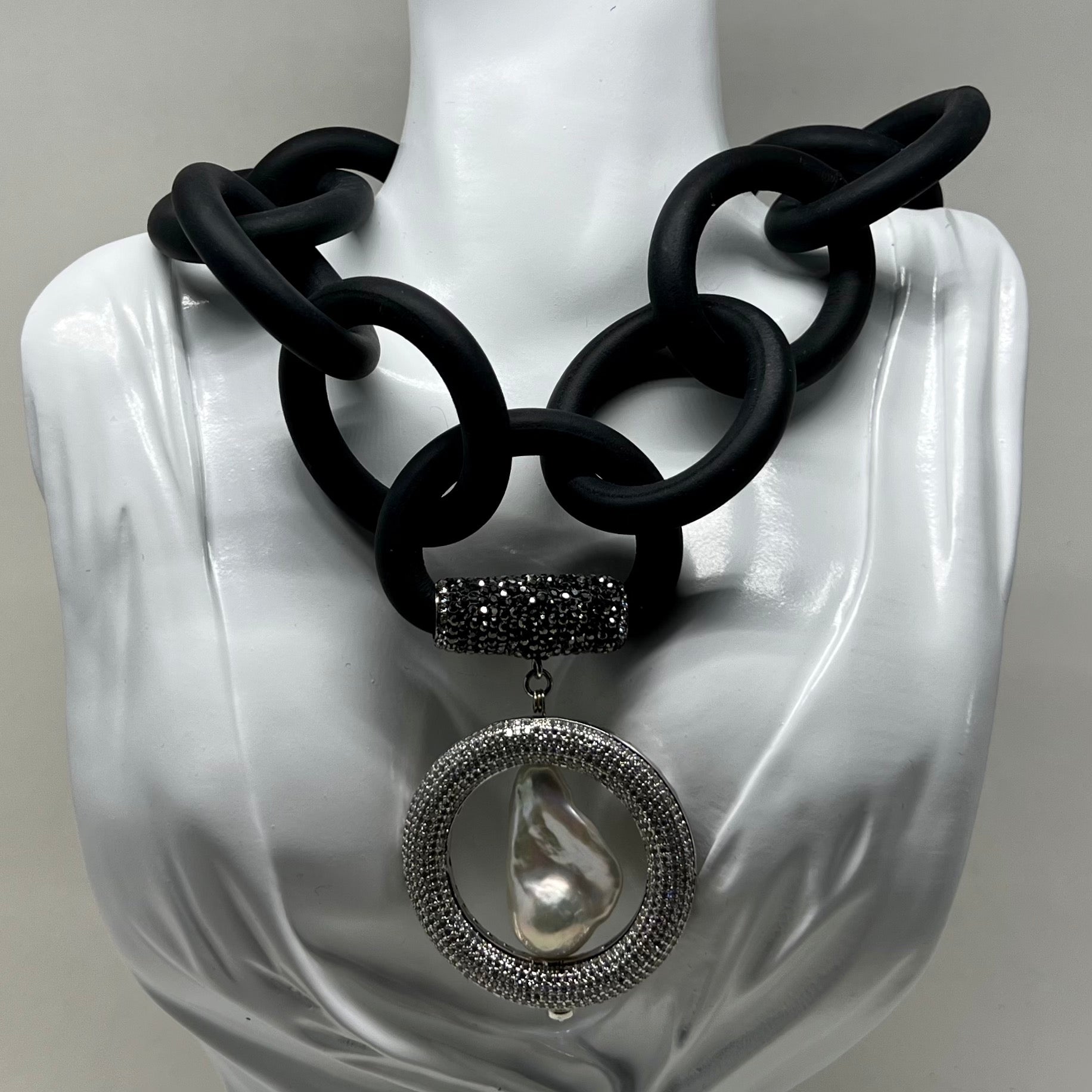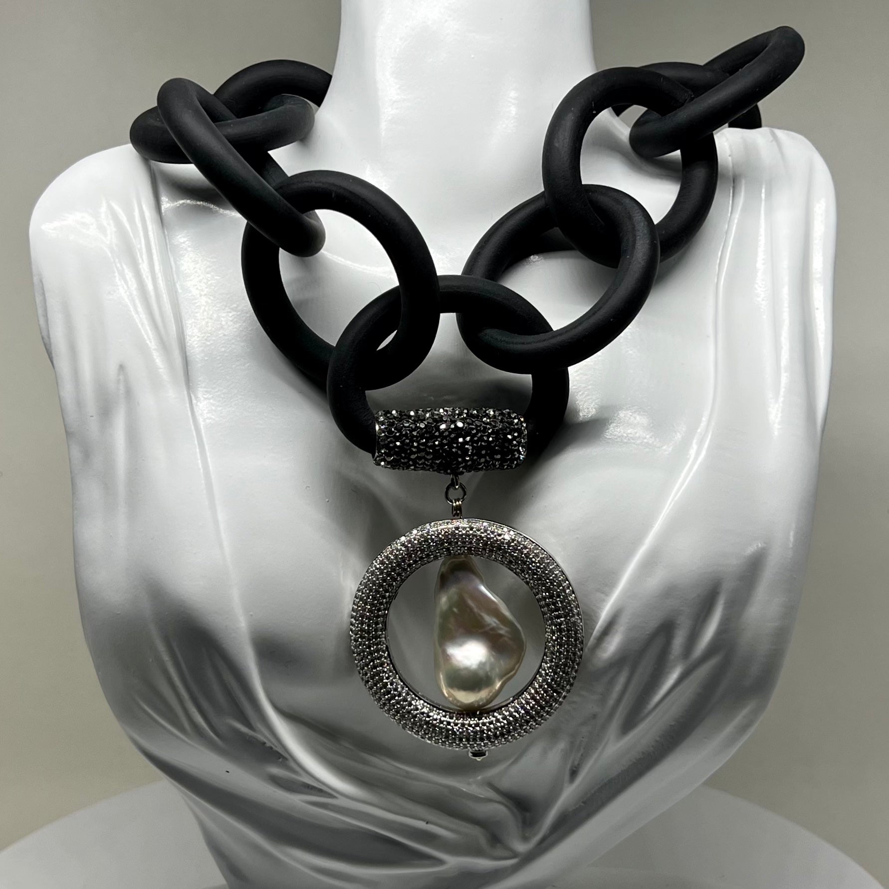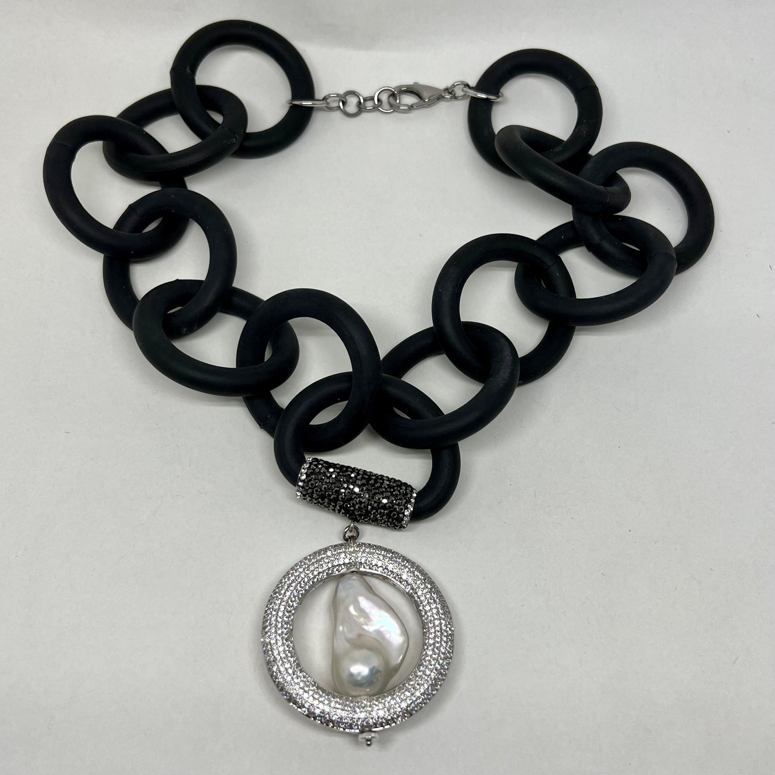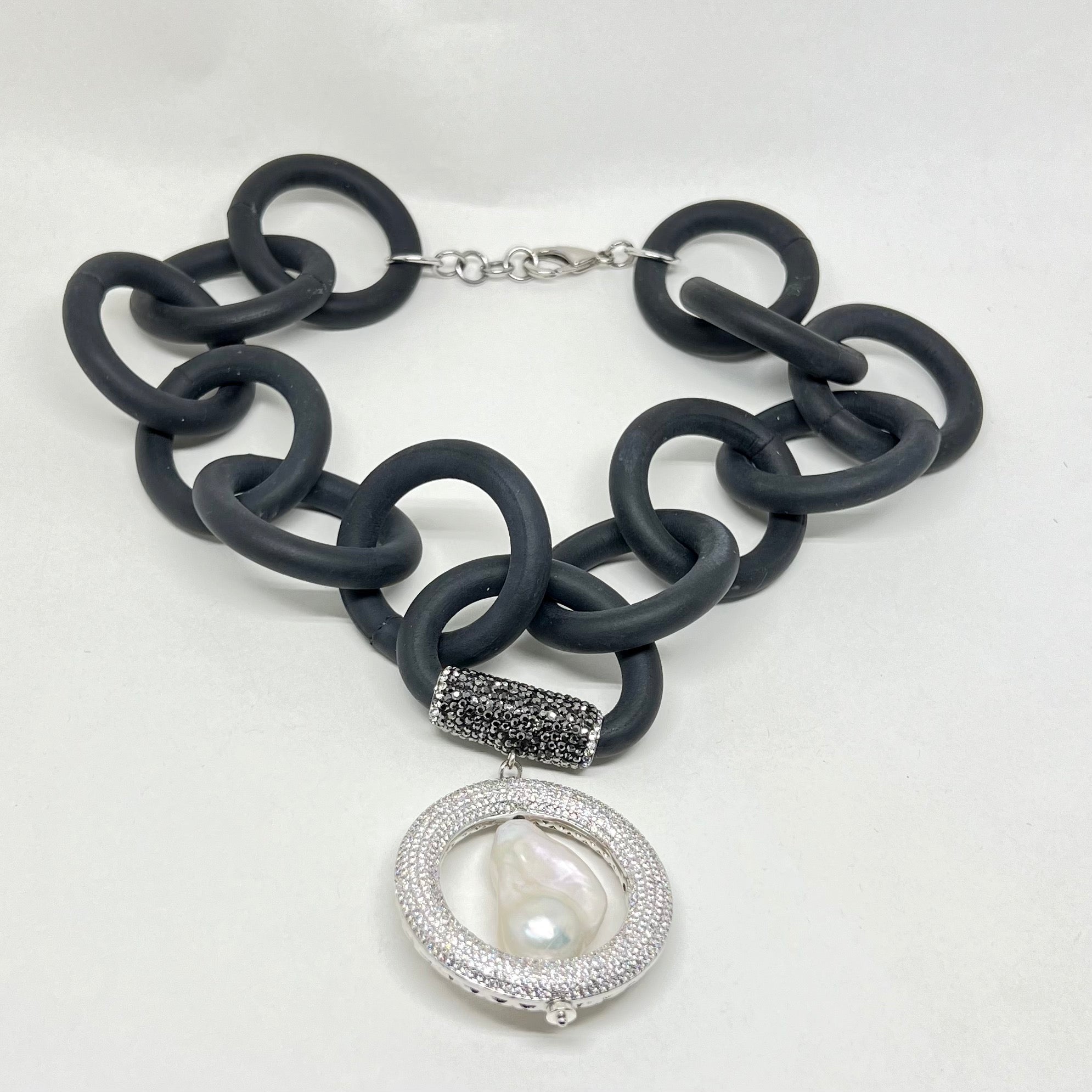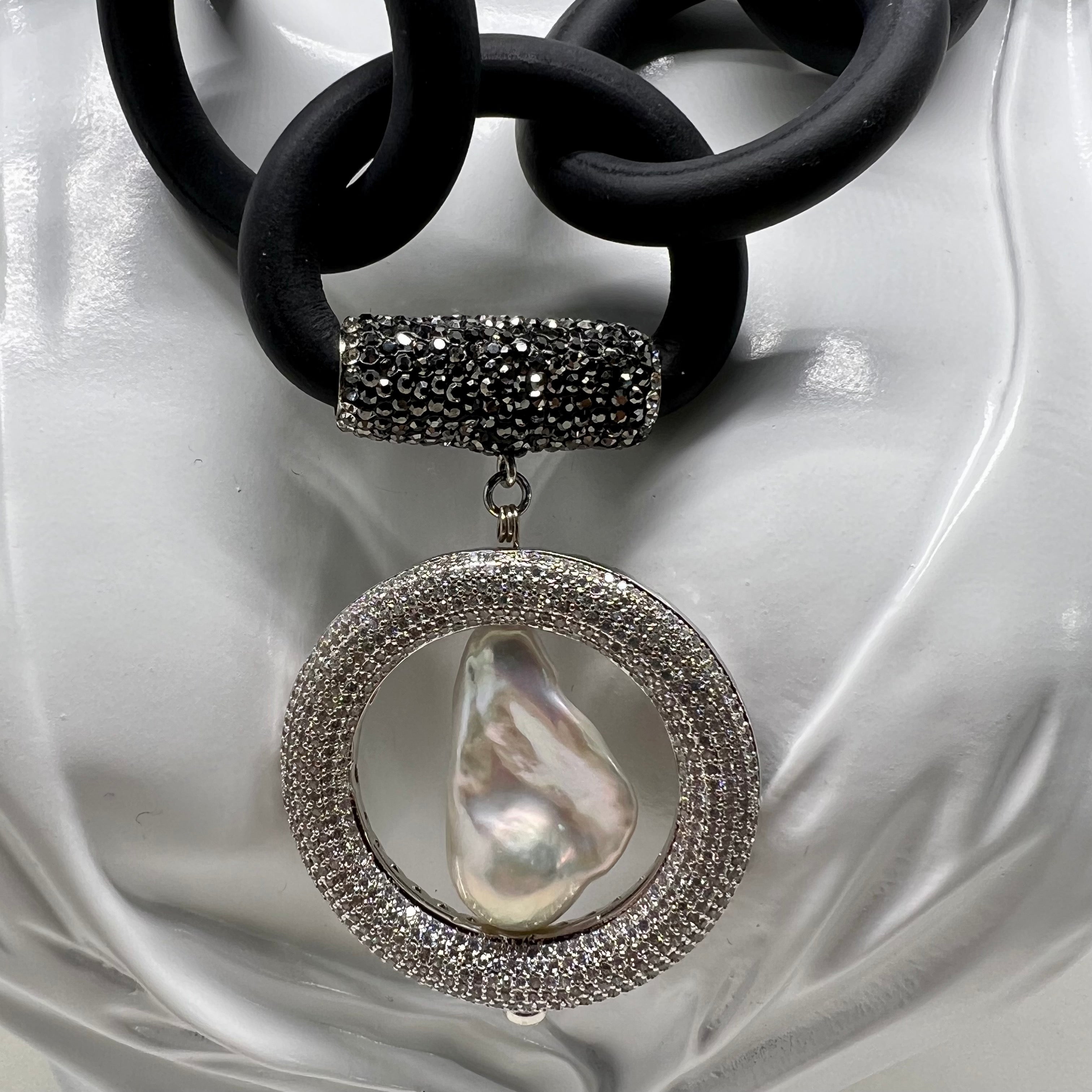 Baroque Pearl Rubber Necklace with pave'd CZ ornaments