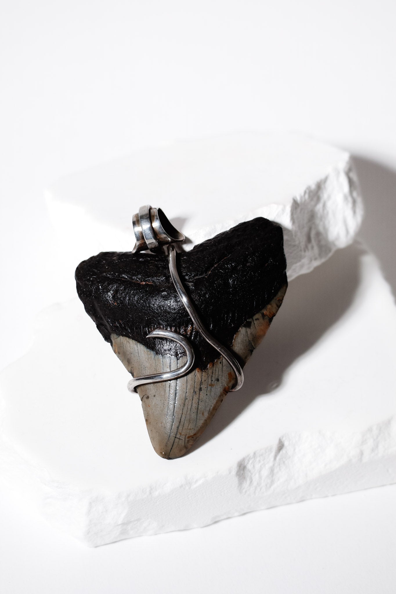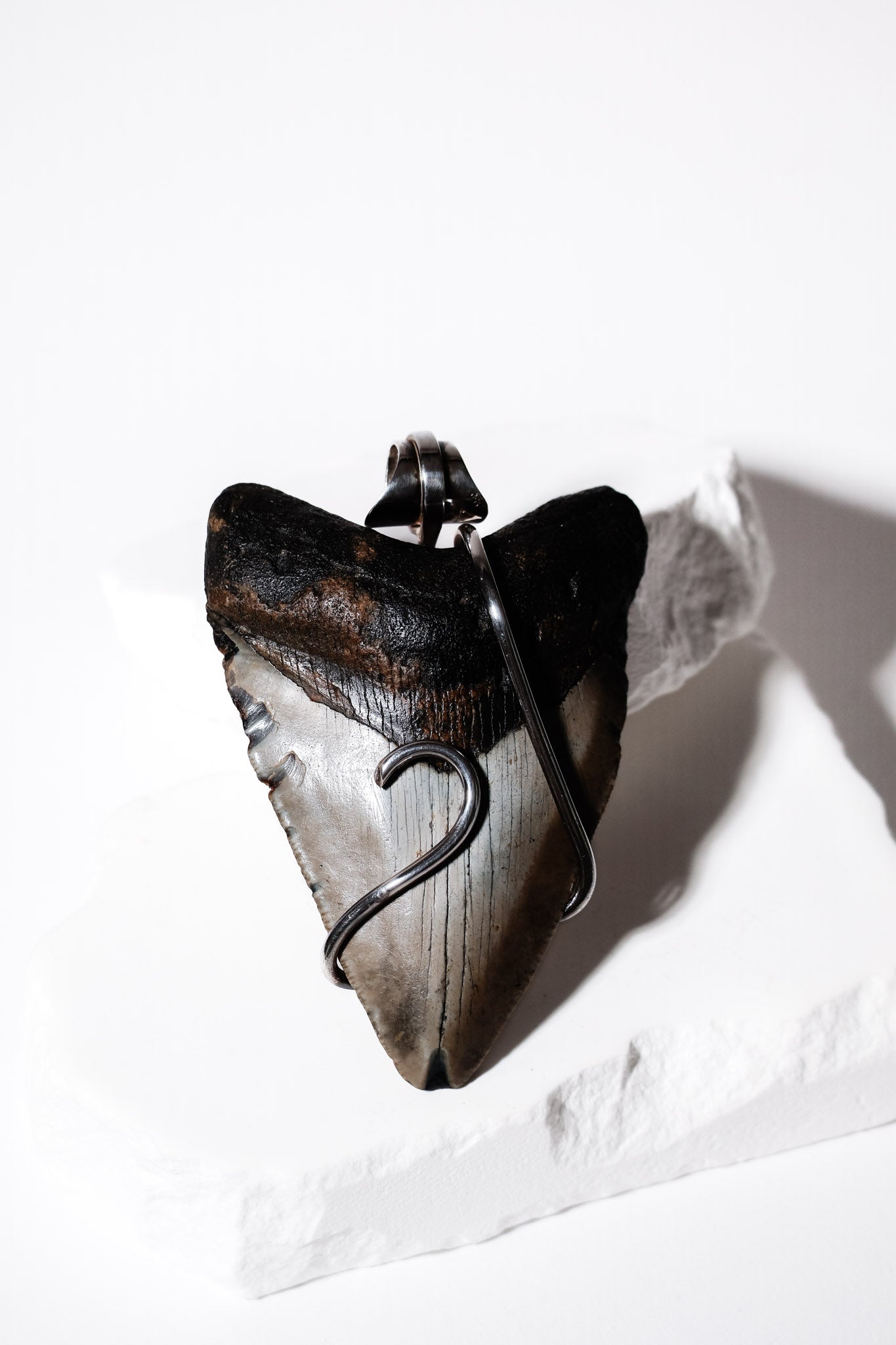 Megalodon Tooth #4 — Silver-wrapped fossil
