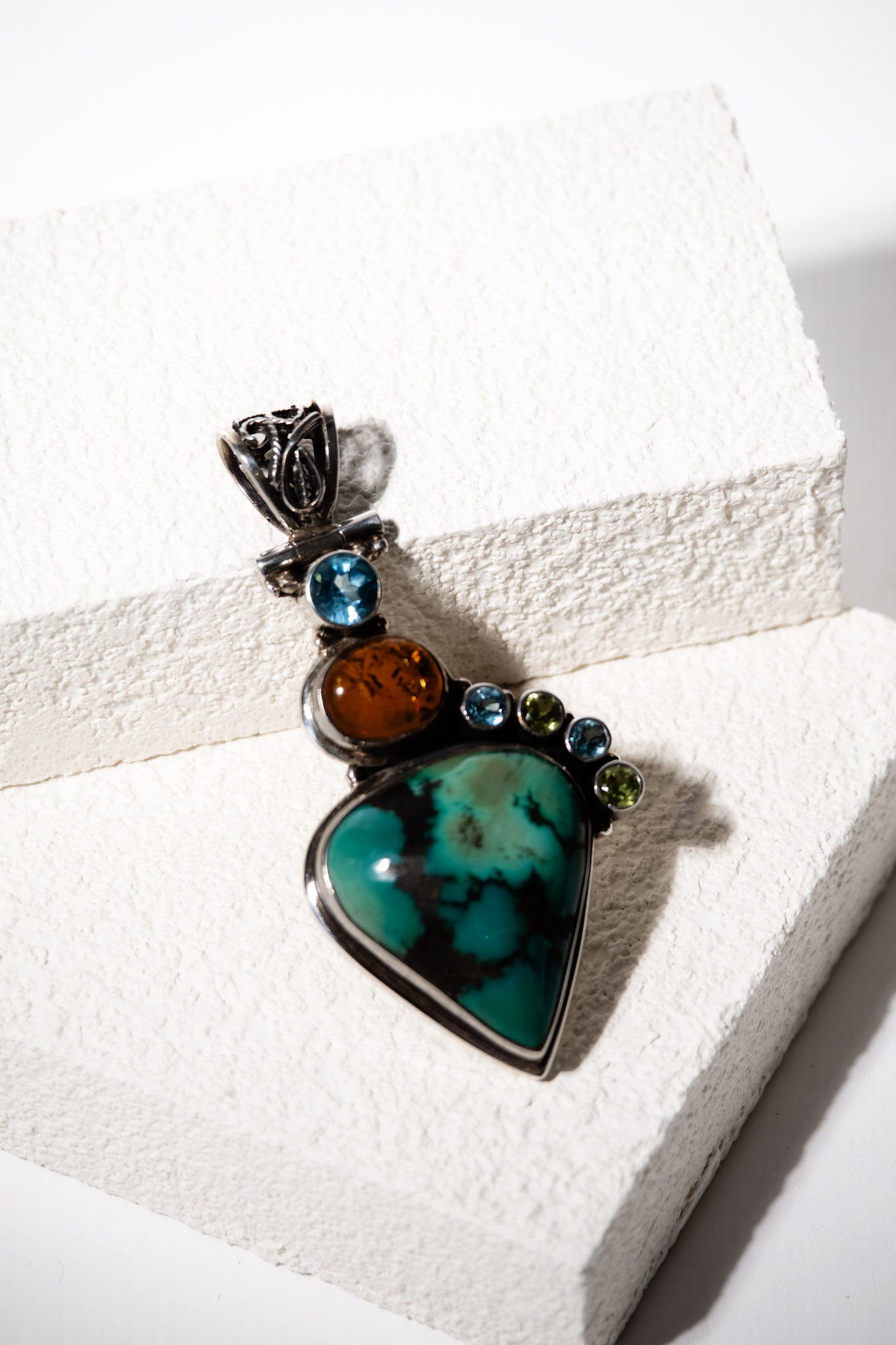 Turquoise/Amber/Peridots — Color-rich stone cluster