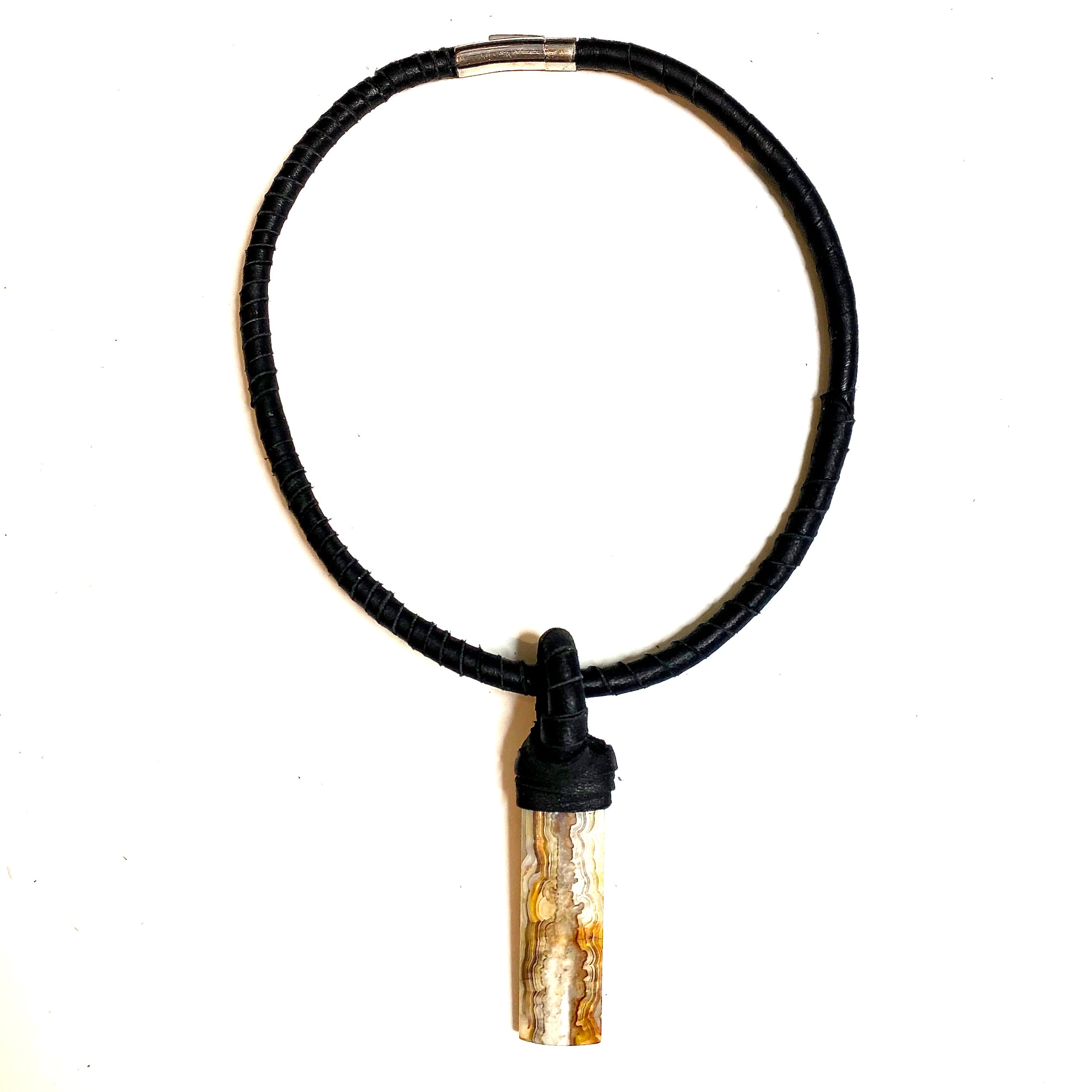Deerskin wrapped necklaces with stone pendent - assorted stones