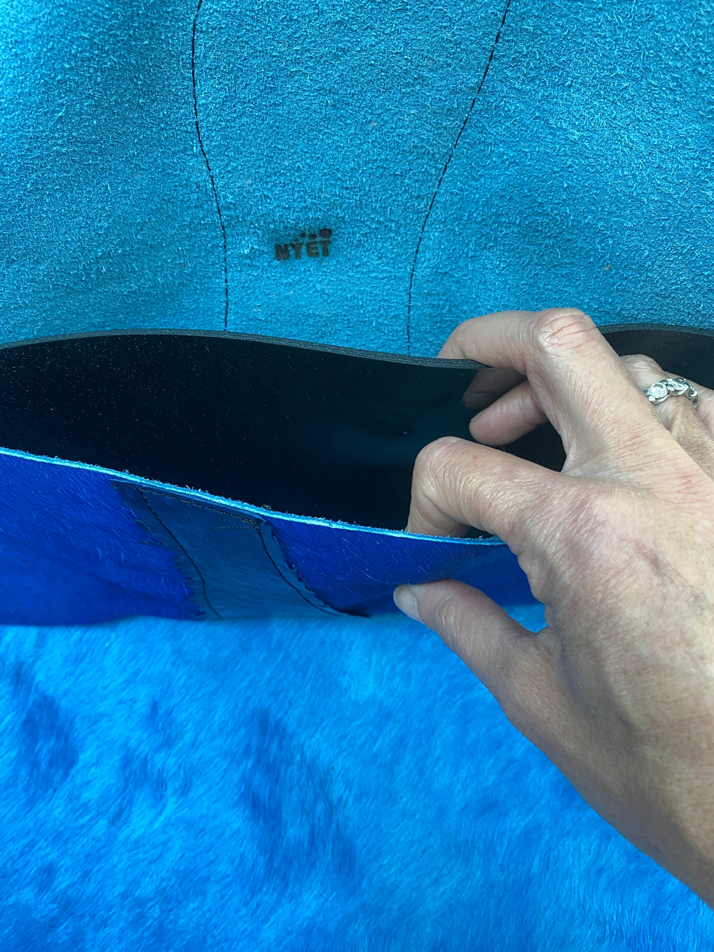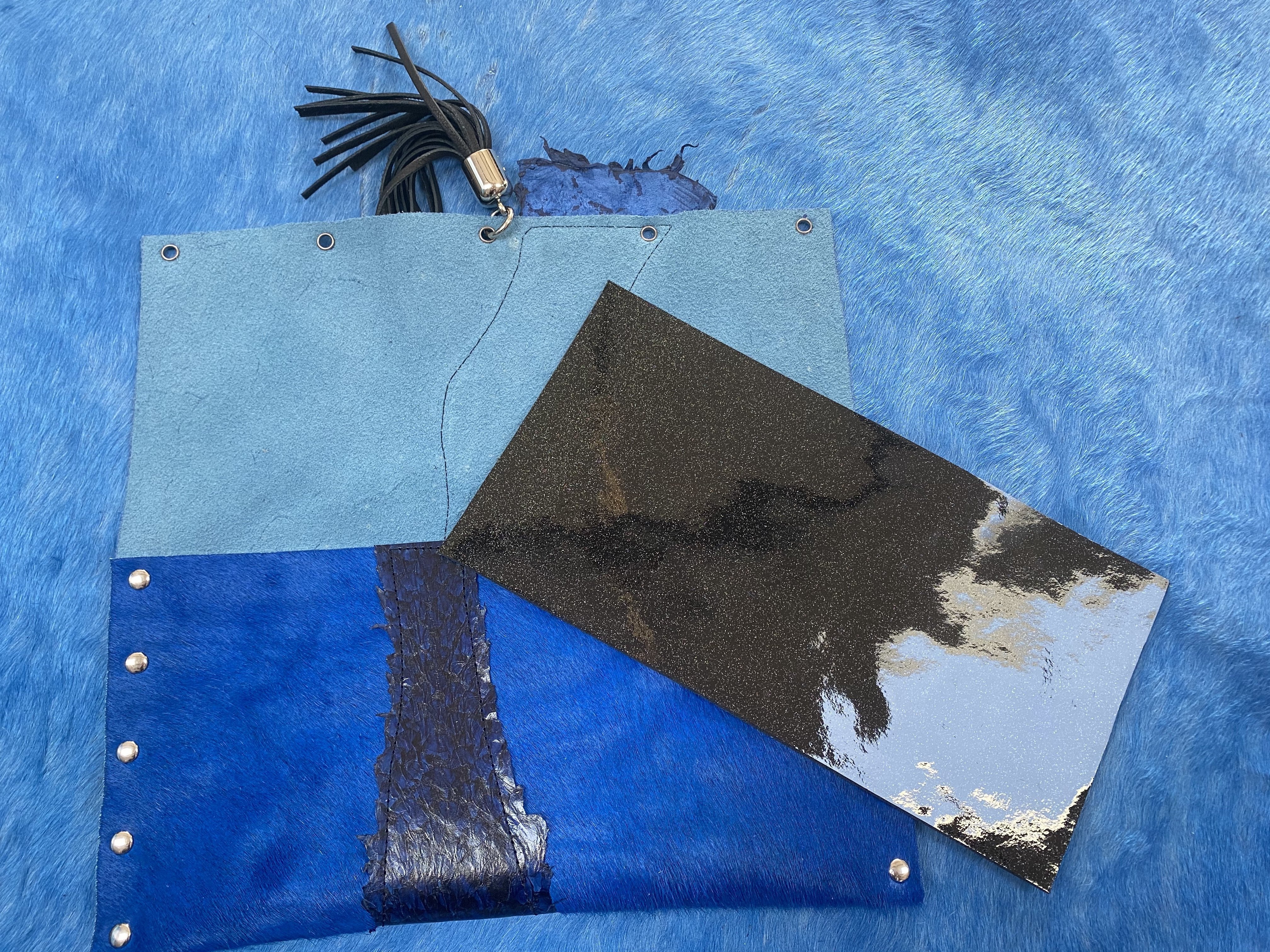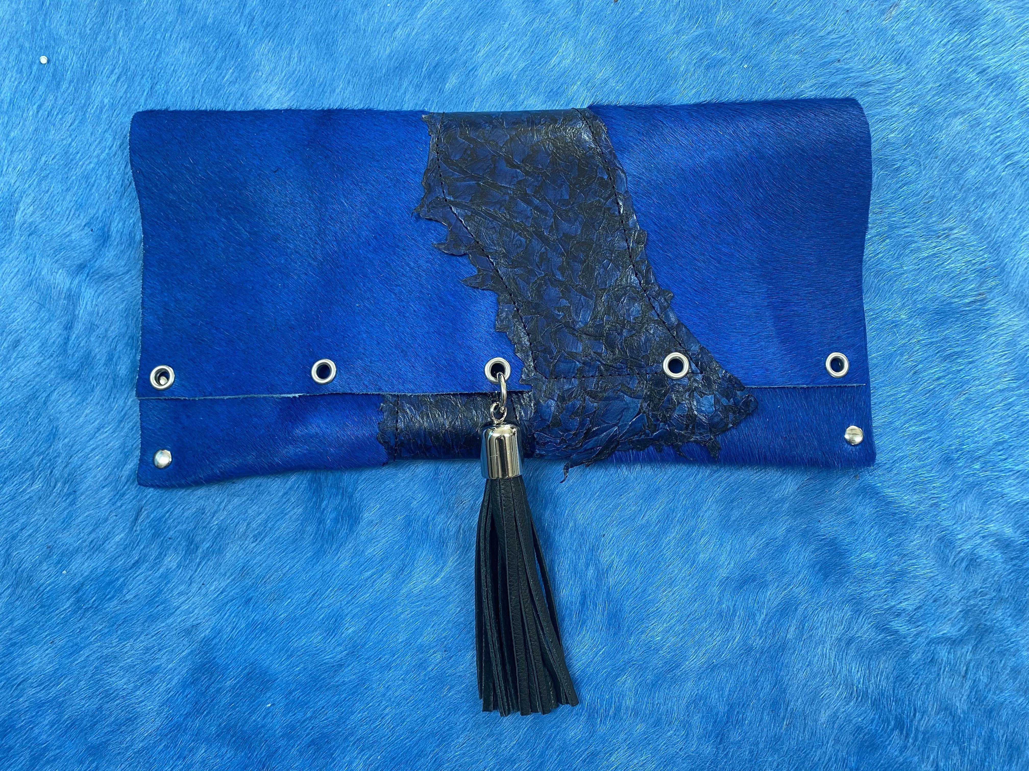 Fish leather and cowhide clutch with deerskin tassel