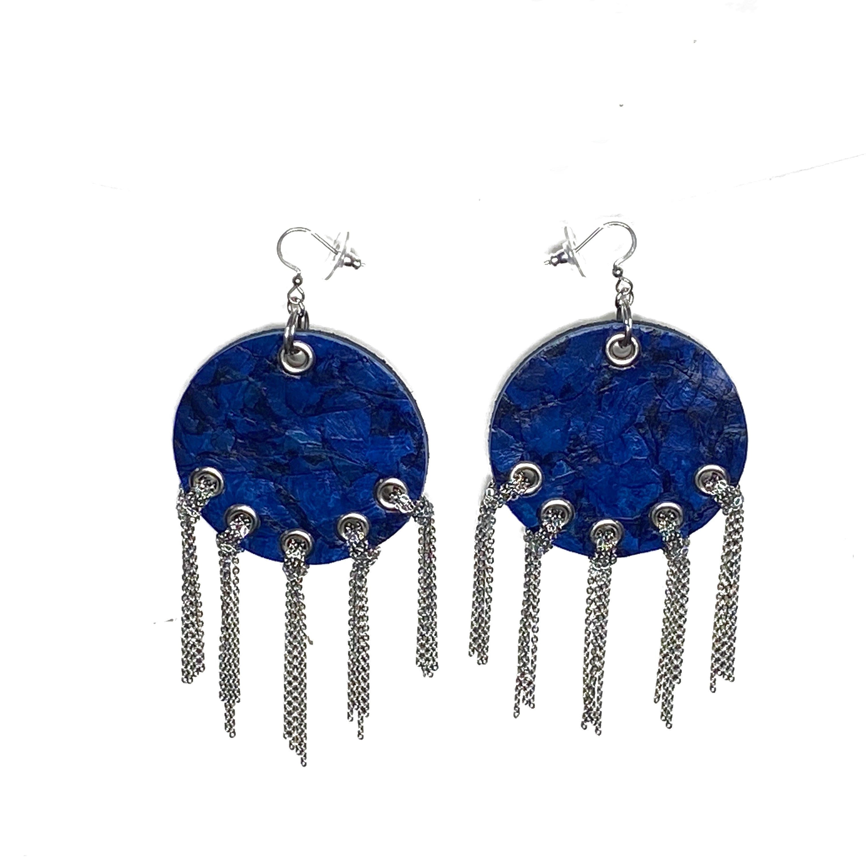 Fish leather earrings with chains