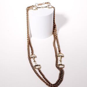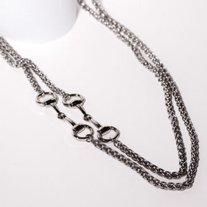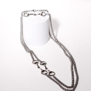 Long Stainless Steel Necklace With Three Horse-bits in Gold or Silver