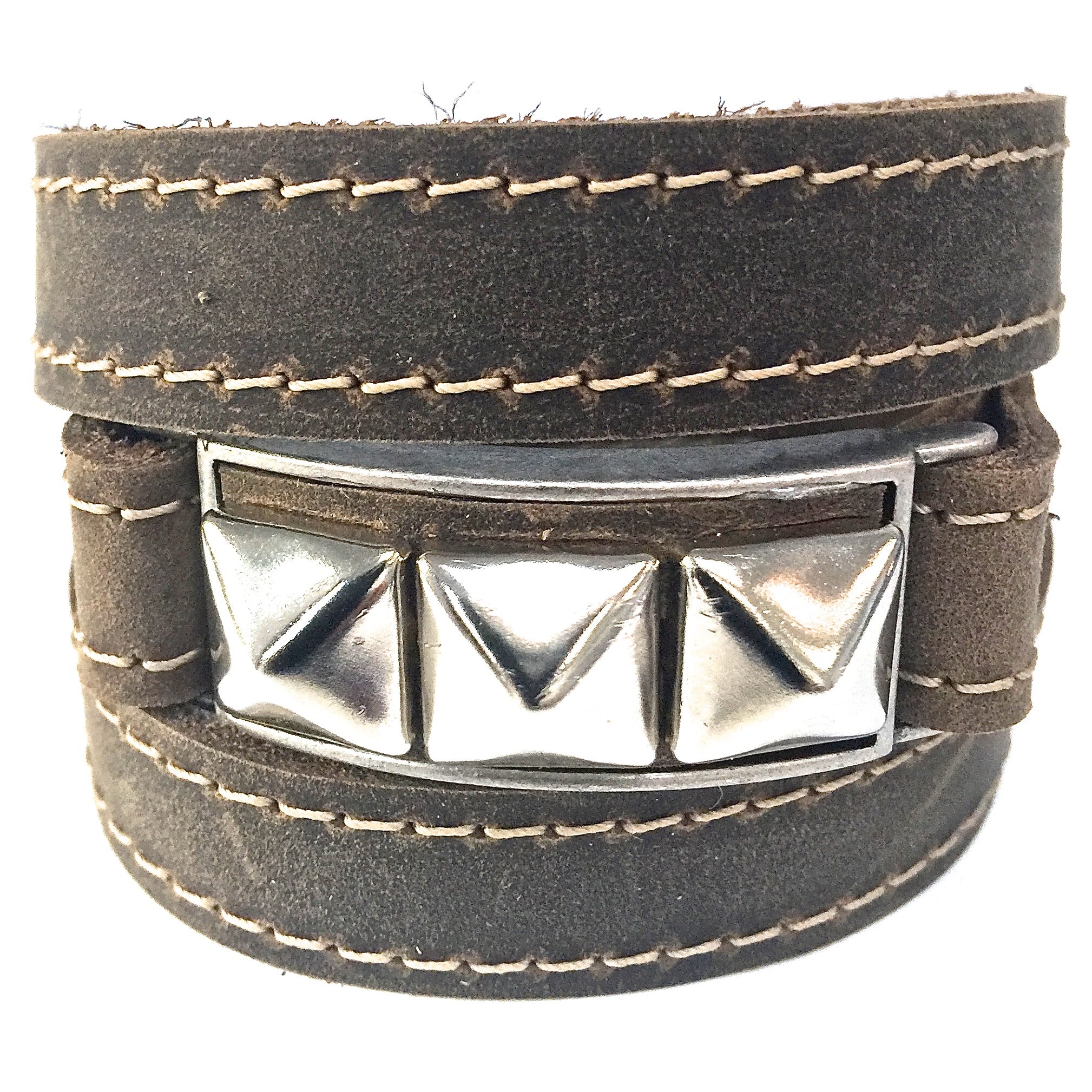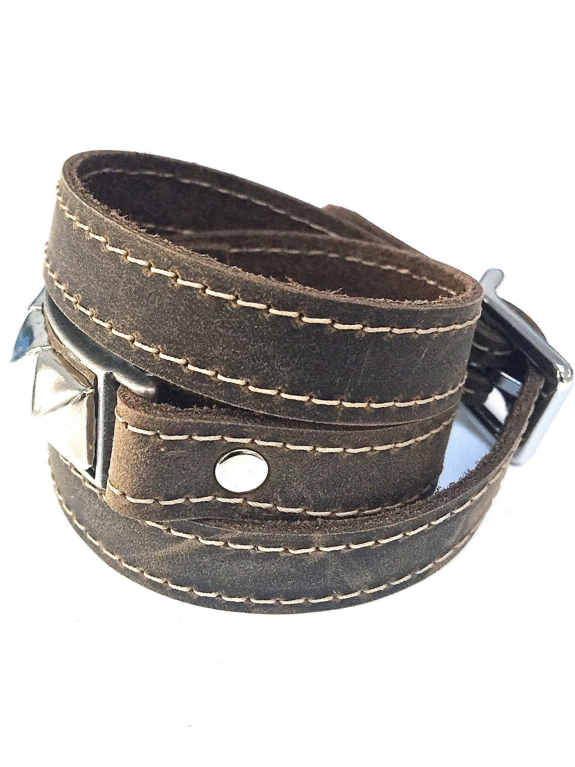 Riveted Distressed Utility Leather Wraparound Bracelet