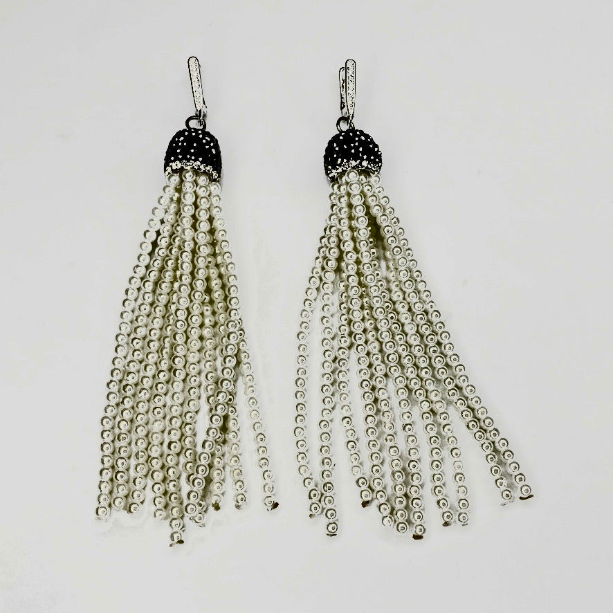 Roaring 20s Crystals, pearls tassel earrings