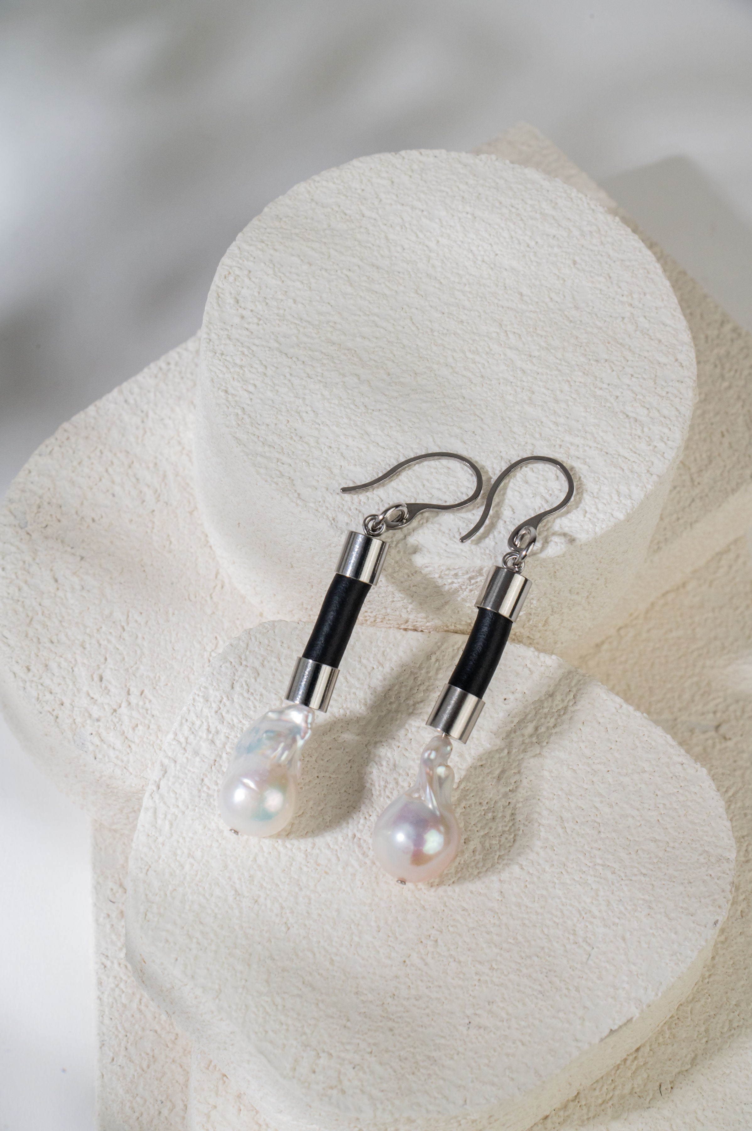Rubber and Baroque Pearl Earrings Silver or Gold
