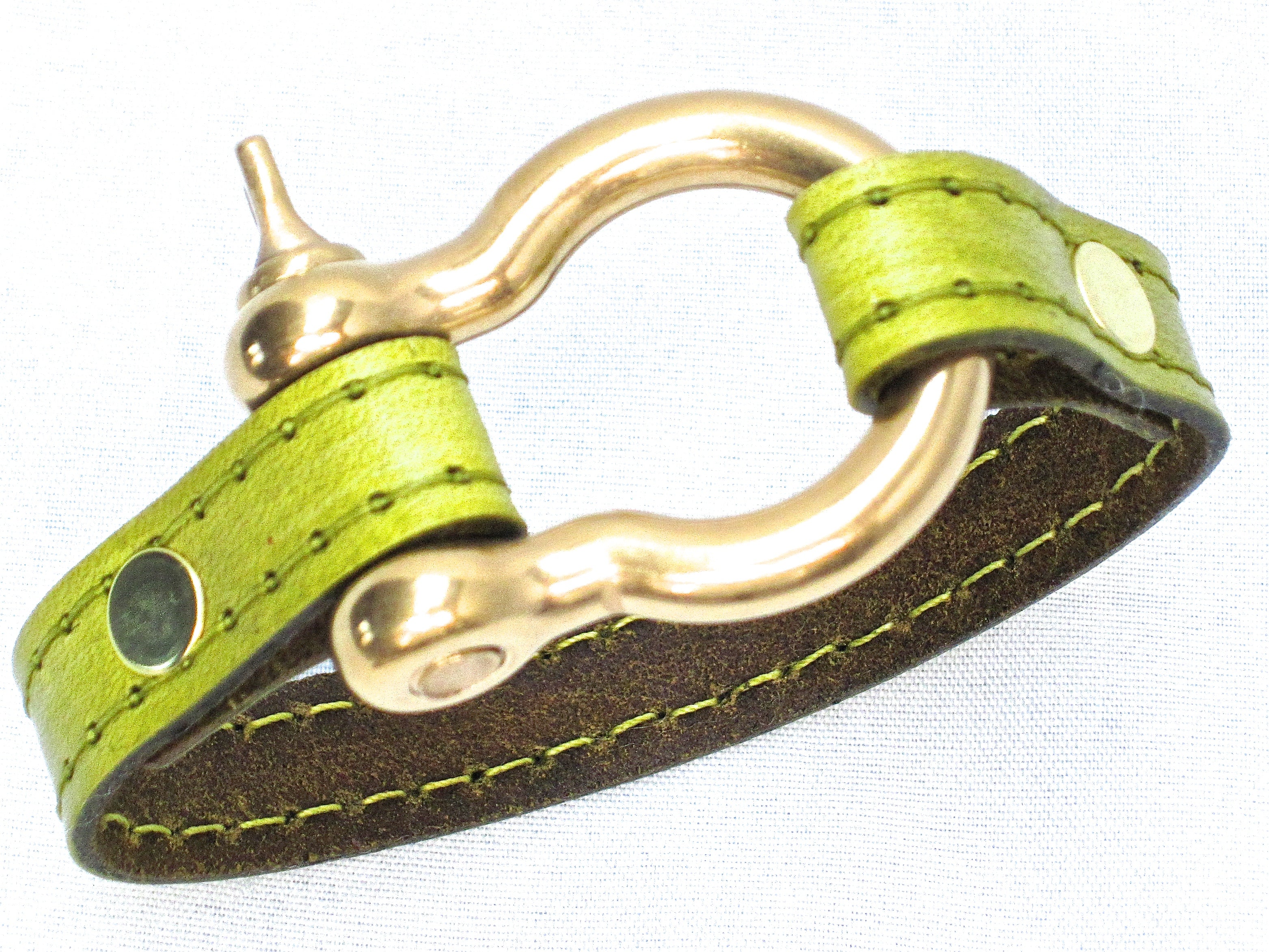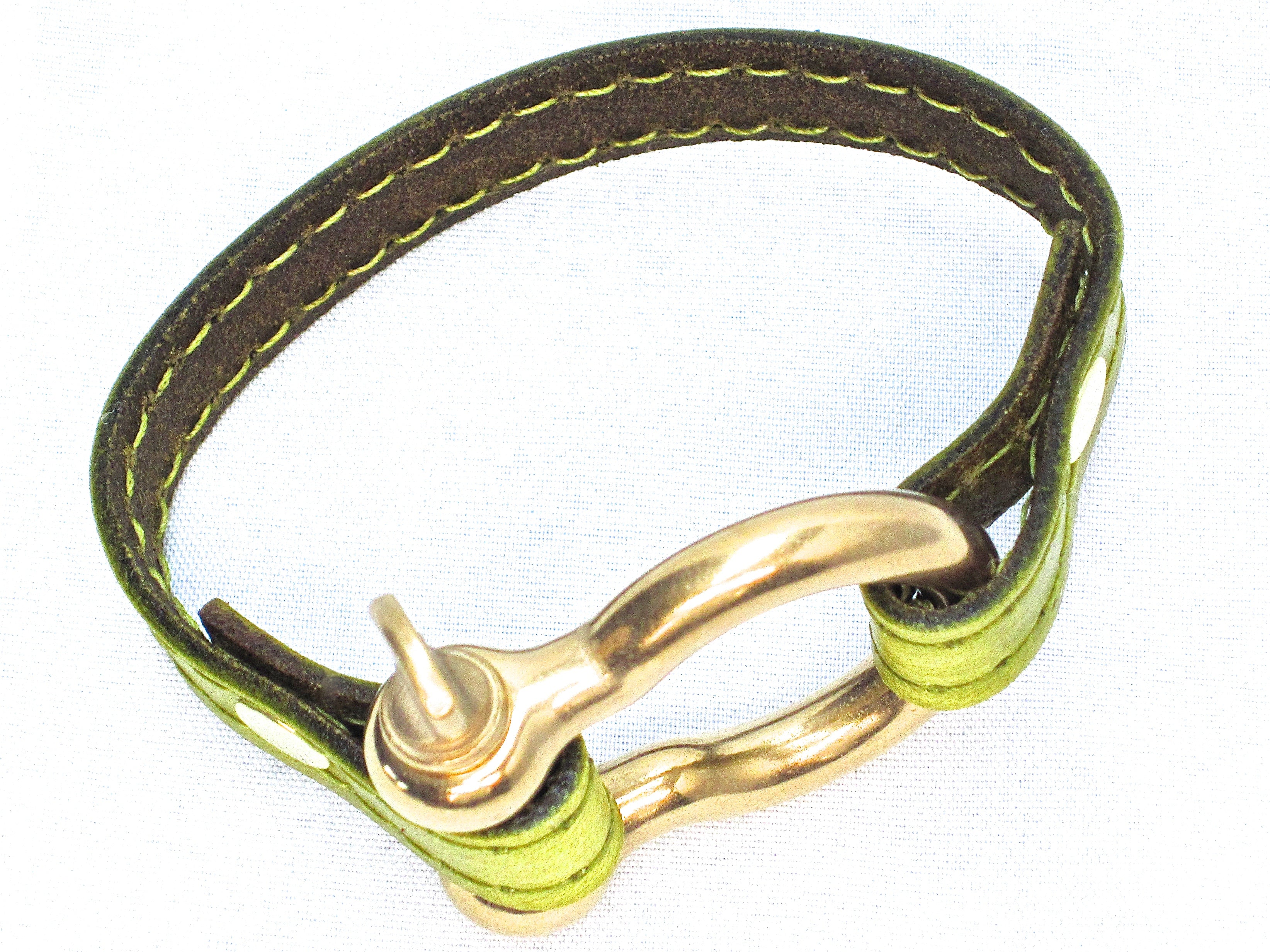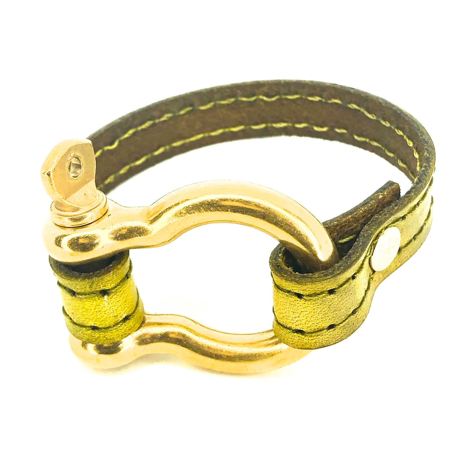 STITCHED LEATHER AND 18K GOLD PLATE OVER STAINLESS STEEL SHACKLE